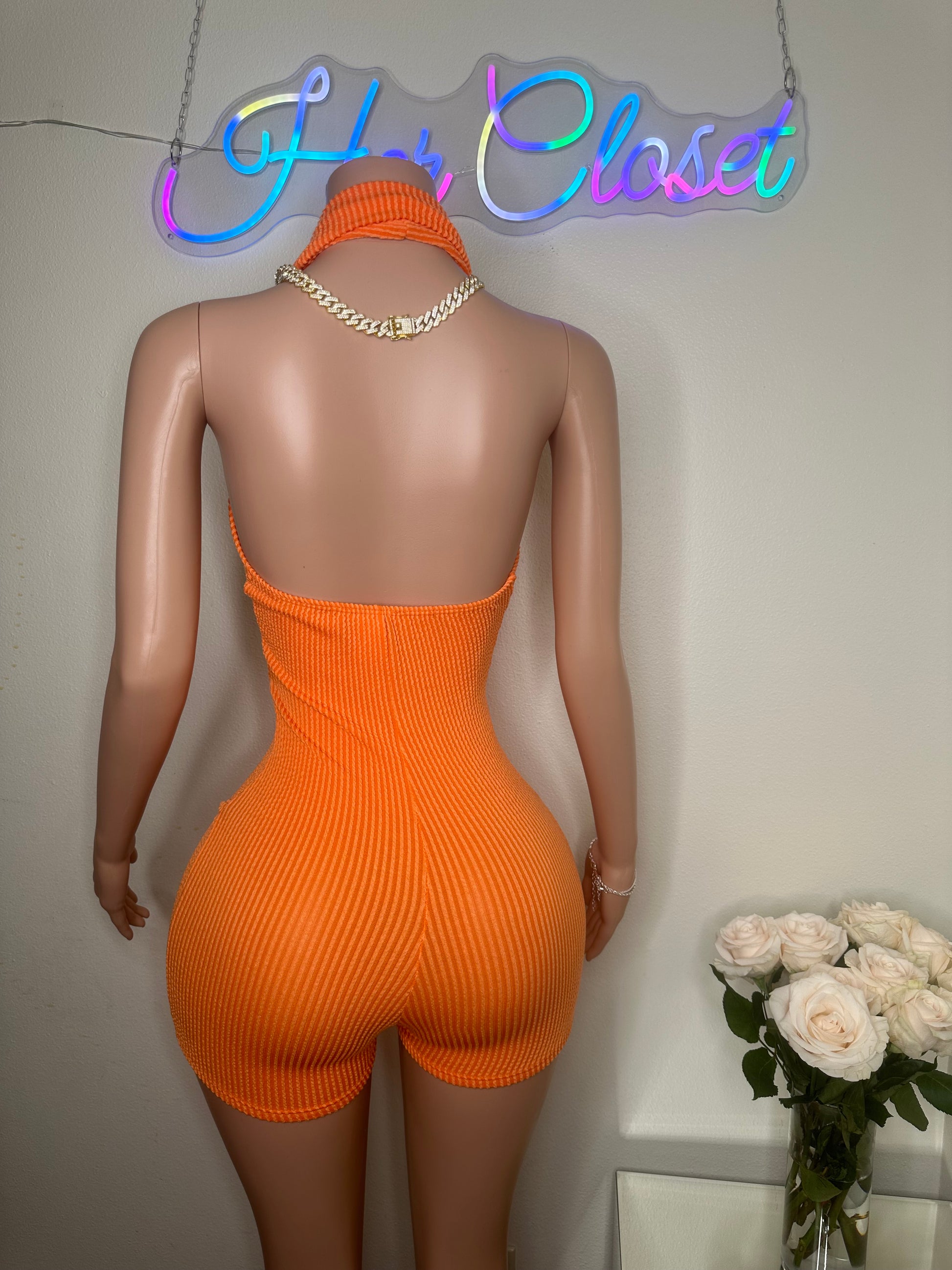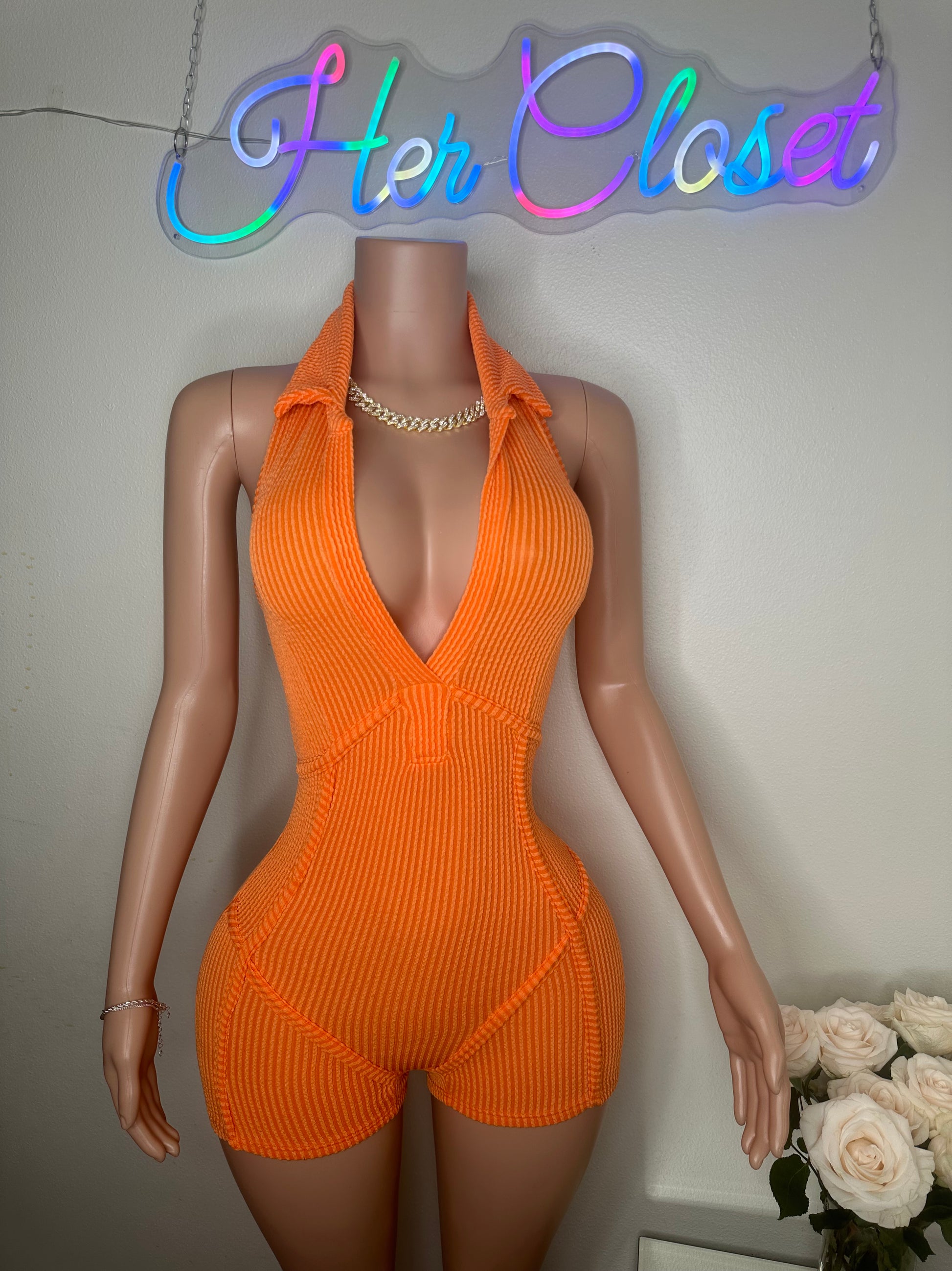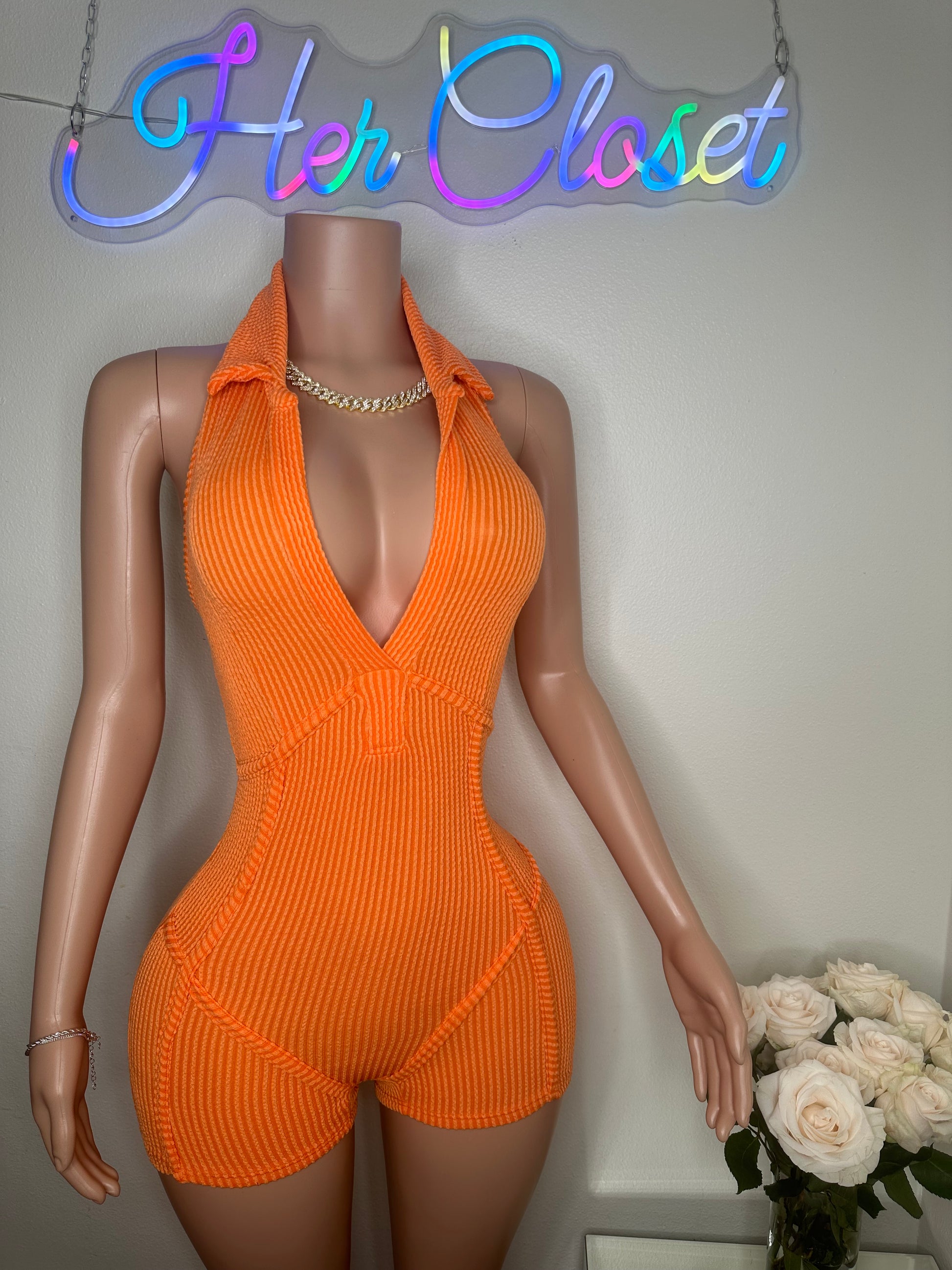 - This romper features a halter collar with a V-neck design and is made from a blend of 76% polyester, 21% rayon, and 3% spandex. It is recommended to hand wash in cold water. The mannequin in the photo is wearing a size small.