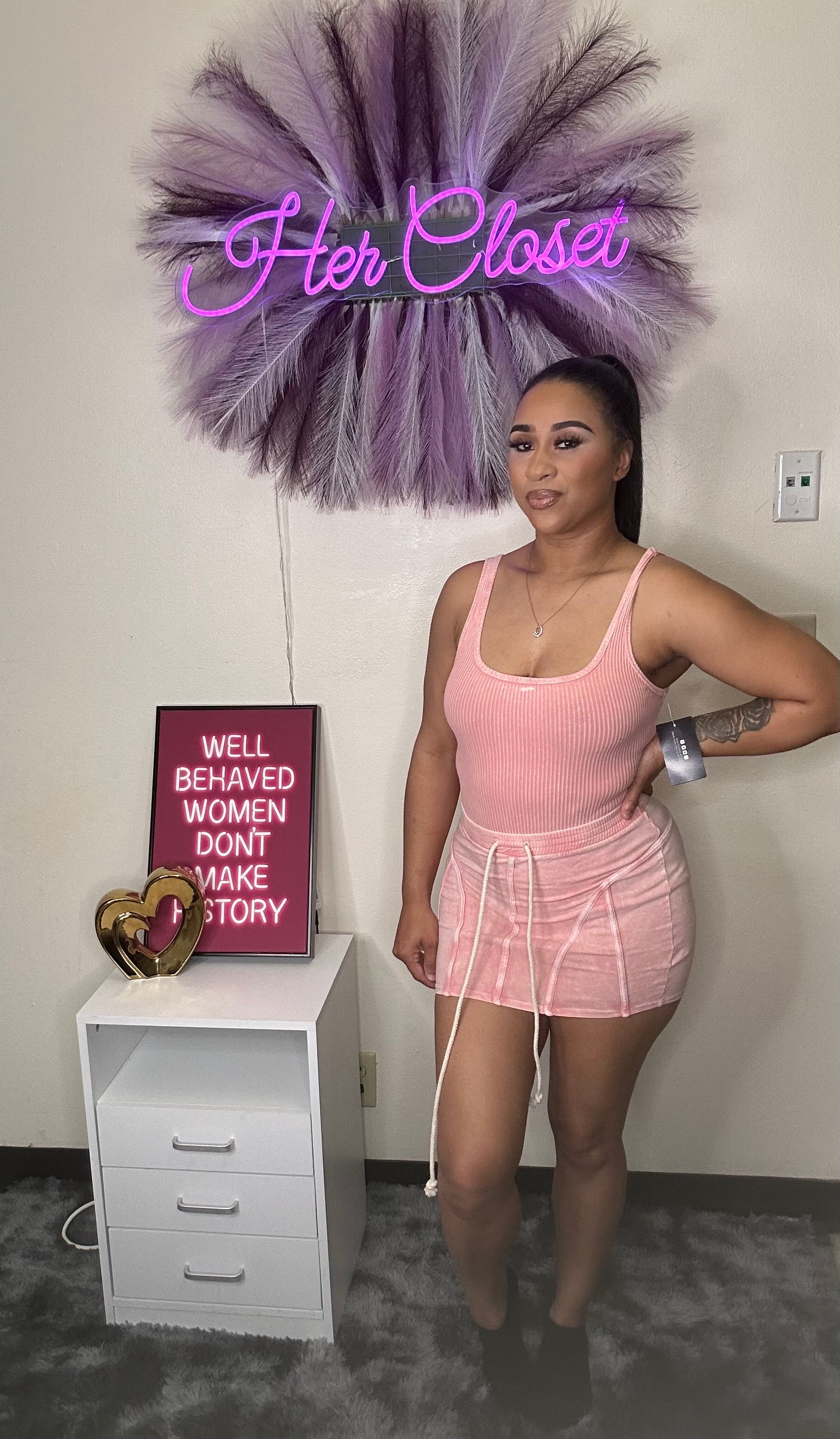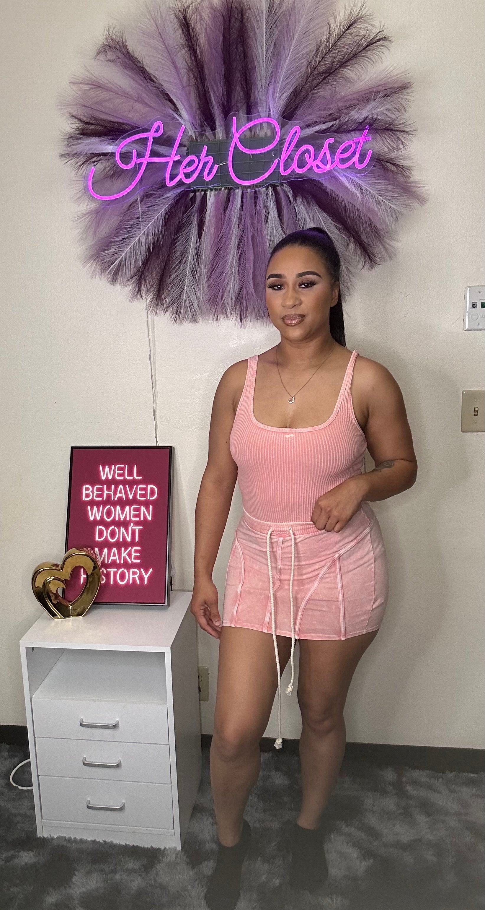 This set features a stretch bodysuit with a u-neck and sleeveless design, as well as a clasp closure for a secure fit. The high-waisted skirt is equipped with an elastic waistband and drawstring, making it comfortable and adjustable. Made with 95% cotton and 5% spandex, this set provides both style and comfort.